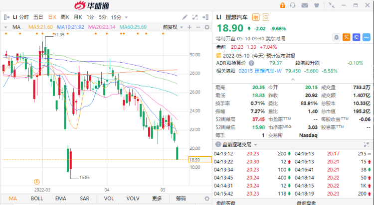华盛资讯5月10日消息,美股盘前,热门中概股普涨,截至发稿,理想汽车(LI)涨超7%。