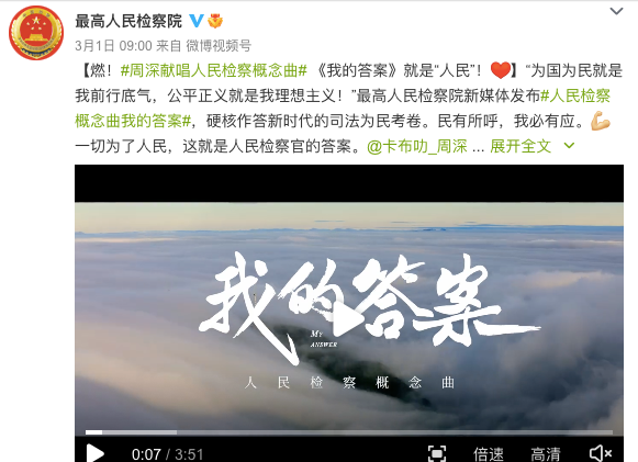 在官方平台上,共青团的宣传曲有他,冬奥会的宣传曲有他,新华社、最高人民检察院出的歌也都有他。