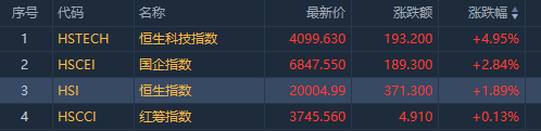 港股一改昨日颓势,三大指数集体走强,截至发稿,恒生科技指数重回4000点上方,国企指数涨近3%,恒生指数涨近2%。