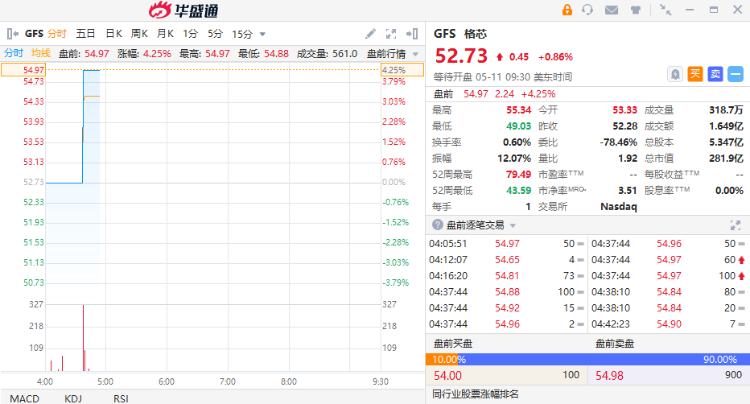 格芯 $GFS 盘前涨超4% Q1扭亏为盈