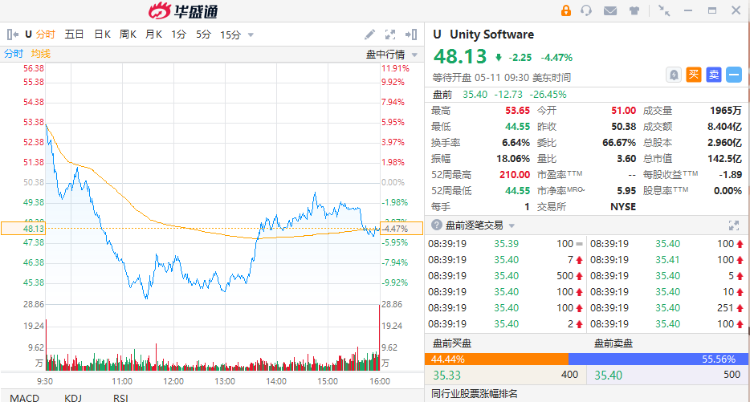 截至北京时间20:39,“元宇宙卖铲人”Unity盘前重挫超26%,该股开盘或续刷历史低价。公司第一季度营收3.2亿美元,同比增长36%;Non-GAAP准则下,净亏损2543.2万美元。第二季度和2022全年销售指引,令市场大失所望。该公司预测第二季度的增长将大幅放缓,预计销售额在2.90亿美元至2.95亿美元之间,而分析师预测为3.5965亿美元。