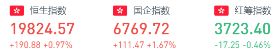 截至5月11日周三收盘,恒生指数涨0.97%,报19824.57点;国企指数涨1.67%,红筹指数跌0.46%。恒生科技指数涨2.89%,快手涨7.52%,美团涨6.32%,哔哩哔哩涨3.41%。