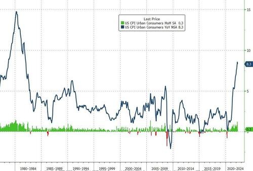 5月11日,美国劳工统计局公布数据显示,美国CPI同比上涨8.3%,较上月8.5%的增幅有所回落,但高于市场预期的8.1%;CPI环比增长0.3%,较上月1.2%有较多回落,仍高于市场预期的0.2%。4月份,除住房、机票、新车价格继续上涨外,医疗、娱乐、家居用品的价格均有所上升。服装、通讯、二手车和卡车价格指数环比下跌。高盛指出,虽然去年以来的商品价格飙升越来越多地表现出回落迹象,但强劲的服务业通胀可能会使CPI保持在高位。