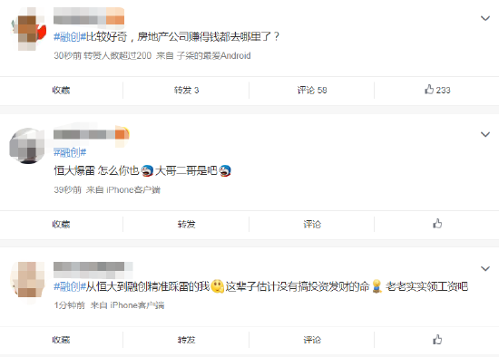 对此,有网友表示,“躺平了”,“真的越来越难了”。还有网友则有点悲催,“从恒大到融创精准踩雷的我,这辈子估计没有搞投资发财的命,老老实实领工资吧 ”