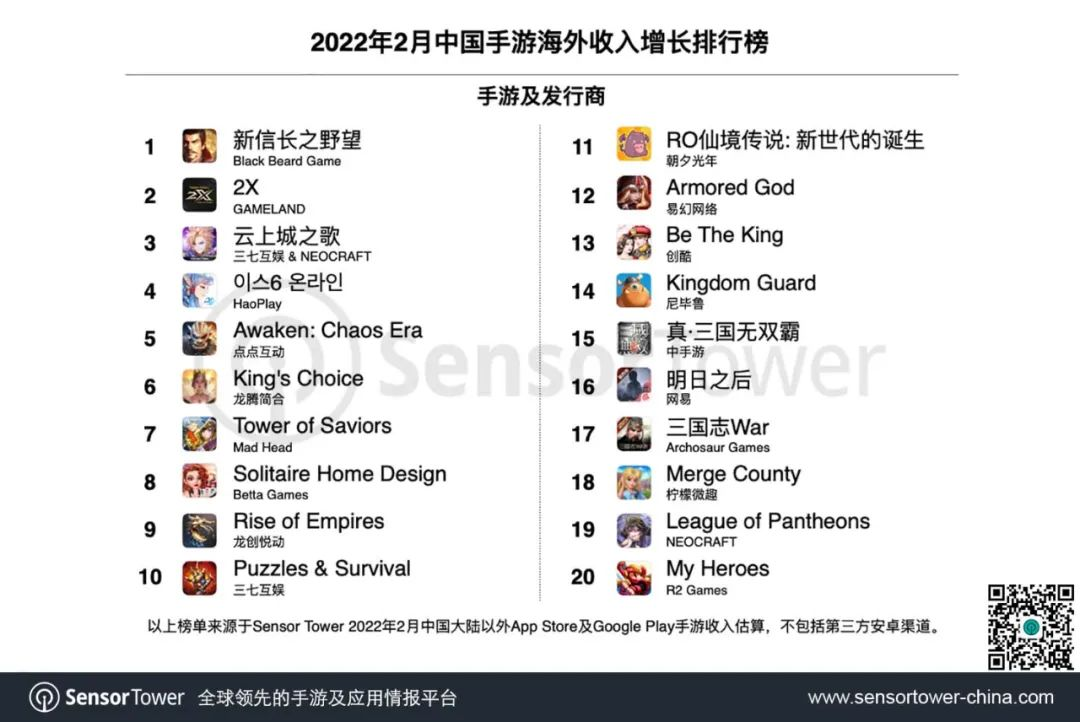Sensor Tower在1月和2月发布的中国手游发行商收入Top 30榜单当中,发布的《Awaken: Chaos Era》分别位列第12位和第5位,是一款近几个月进入大众视野的后来者。