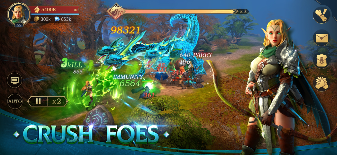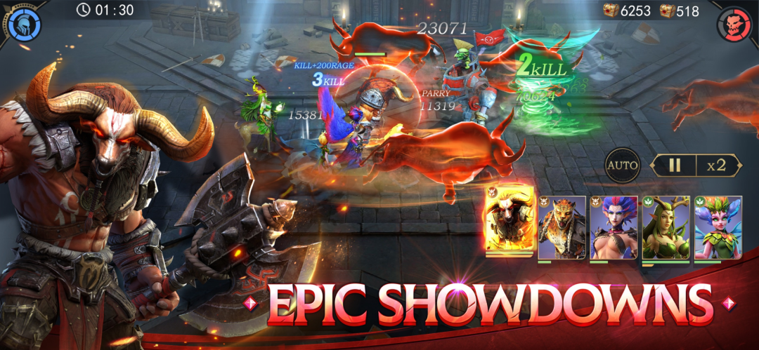 《Rage of Destiny: RPG Arena》也是IGG旗下的一款RPG卡牌,和《Mythic Heroes》不同的在于游戏整体上的画风更偏欧美一点,有不少典型的欧美奇幻的要素,同时这是一款3D建模、横版对战的游戏。游戏同样包含挂机收益内容,推进的节奏交由玩家掌控。《Rage of Destiny: RPG Arena》比较注重战斗表现效果,很多技能都有丰富的特效。