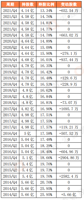 ADR)形式在纳斯达克挂牌,本表中持股数及持股变动已换算为普通股,比例为1股ADR=2股普通股。