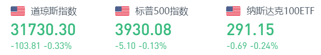 截至5月12日周四收盘,美国三大股指再度下跌。道指跌103.81点,跌幅为0.33%,报31730.30点;纳指涨6.73点,涨幅为0.06%,报11370.96点;标普500指数跌5.10点,跌幅为0.13%,报3930.08点。