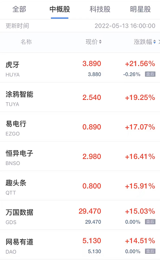 热门中概股周五收盘多数走高,虎牙涨超21%。