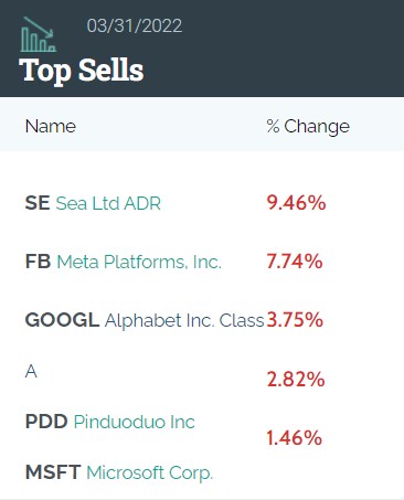 前五大卖出标的包括Sea、Meta、谷歌以及微软(MSFT.US)等。