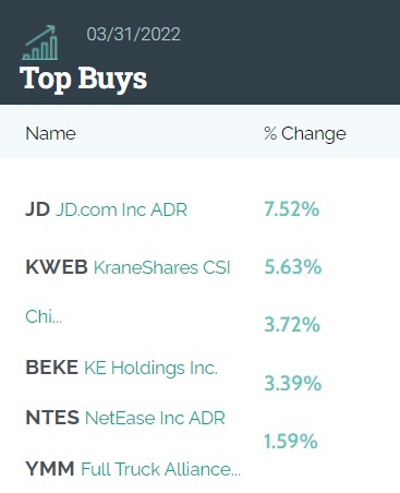 从持仓比例变化来看,前五大买入标的分别是:京东、KraneShares中国海外互联网ETF、贝壳、网易以及满帮(YMM.US)。