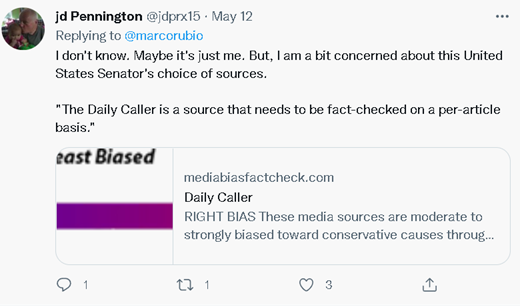 有美国网民还讽刺说,《每日传讯》是一个公信力极差的媒体,其发布的每篇报道都不能被轻信,转发布这种媒体的信息,可见卢比奥的水平有多差。