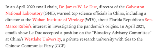 在如今栽赃抹黑勒·杜克教授的“报道”中,《每日传讯》先是宣称他们获得了大量他与武汉病毒所以及中国科学家的科研人员的邮件往来,里面显示勒·杜克曾经在2020年4月主动向武汉病毒所提出帮助,希望帮这家中国的科研机构在美国澄清涉及新冠病毒来源的谣言,以及帮武汉病毒所应对来自美国国会的“调查”。