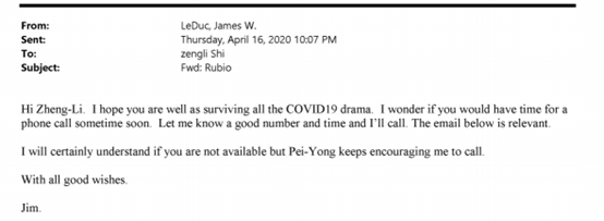 然而,笔者查阅了这家极右翼媒体提到的勒·杜克与中国科学家以及武汉病毒所的邮件往来后发现,他不过是作为一个与武汉病毒所有过合作的、有良知的美国科学家,希望帮武汉病毒所和中国的科研同行澄清早已被美国的政客和反华势力高度政治化的病毒溯源科学问题,希望在美国的舆论场帮武汉病毒所还原真相。