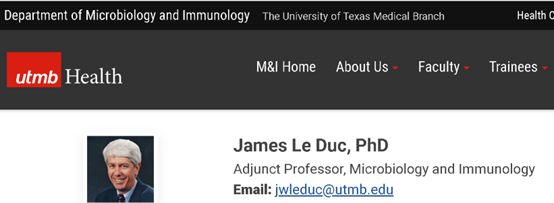 这位被污蔑为是“美奸”的科学家名叫詹姆斯·勒·杜克(James Le Duc)。他是美国得克萨斯大学教授,也曾是美国加尔维斯顿国家实验室(Galveston National Laboratory)的主任。