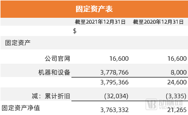 公司2021年及2020年的固定资产情况(数据摘自企业财报)
