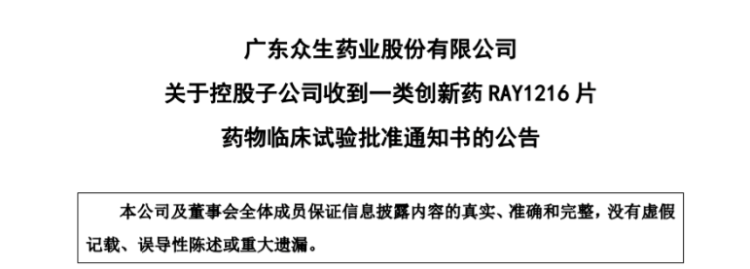 众生药业日前发布公告,称口服抗新型冠状病毒3CL蛋白酶抑制剂RAY1216片的临床试验获得药监局批准。据悉,该药物的临床试验申请于今年5月11日获受理。