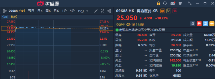 摩根大通表示,再鼎医药定位颇具吸引力,公司产品管道风险较低,其他业务发展具潜力,预期中国的行业监管及改革具有长期的推动作用,给予“增持”评级。