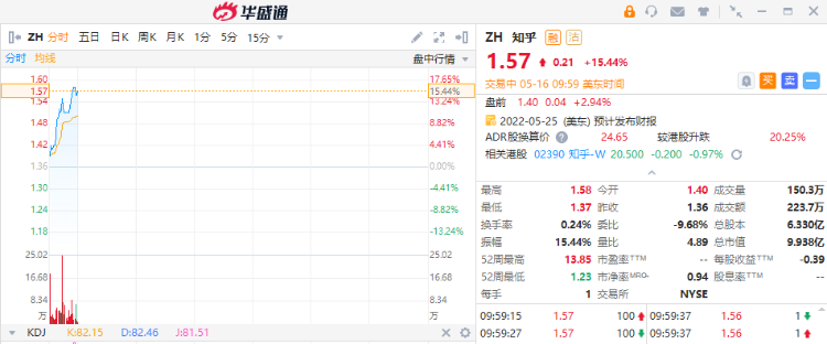 知乎盘中涨超15%,公司将于5月25日美股盘前公布Q1业绩。