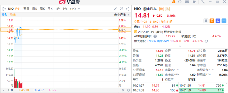 蔚来盘中涨超3%,旗下首款中大型纯电轿车ET7也宣布,将于5月23日起全系售价上调1万元。
