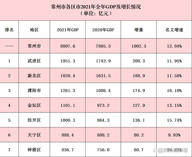 值得注意的是,金坛区是常州市下辖区,2021年实现地区生产总值(GDP)1101.09亿元,按可比价计算,同比增长9.5%,体量位居全市第四。目前,金坛区七普常住人口约为58.5万人,人口数量在全市7个区市中位居第三位。以此人口数量为基数计算,金坛区2021年全年人均GDP约为18.82万元,位居全市第三位,比全市人均值高了2.13万元。