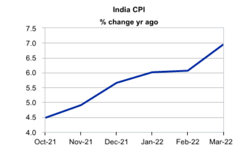 在禁令宣布前一天的12日,印度中央统计局公布了4月的消费者价格指数(CPI)升至远超预期的7.79%,大幅突破了印度央行规定的6%可容忍上限,是近8年以来的最高水平。