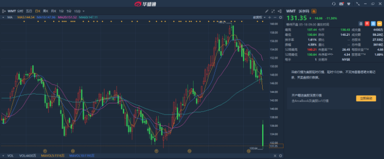 周二,在沃尔玛(WMT)发布了令人失望的Q1季报和指引之后,当日收盘下跌11.38%,创下了2022年的新低,也创出了多年来最大单日跌幅的记录,市值蒸发约460亿美元。