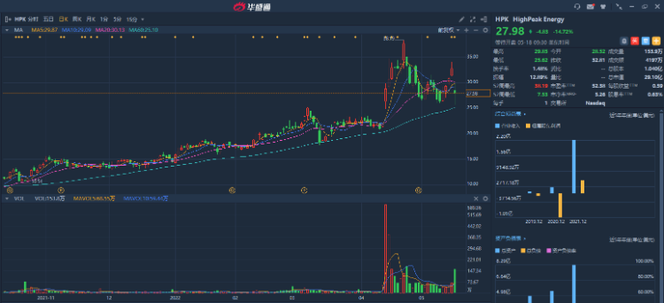 财报之后,HPK收盘报27.98美元,当日下跌4.83美元,该跌幅基本吞噬了前几日的上涨幅度。