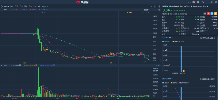 疲软的业绩导致 Buzzfeed(BZFD)大幅下跌,周二这家网络媒体公司的股价下跌了近 9 %,达到了自去年与 SPAC 交易上市以来的最低水平。