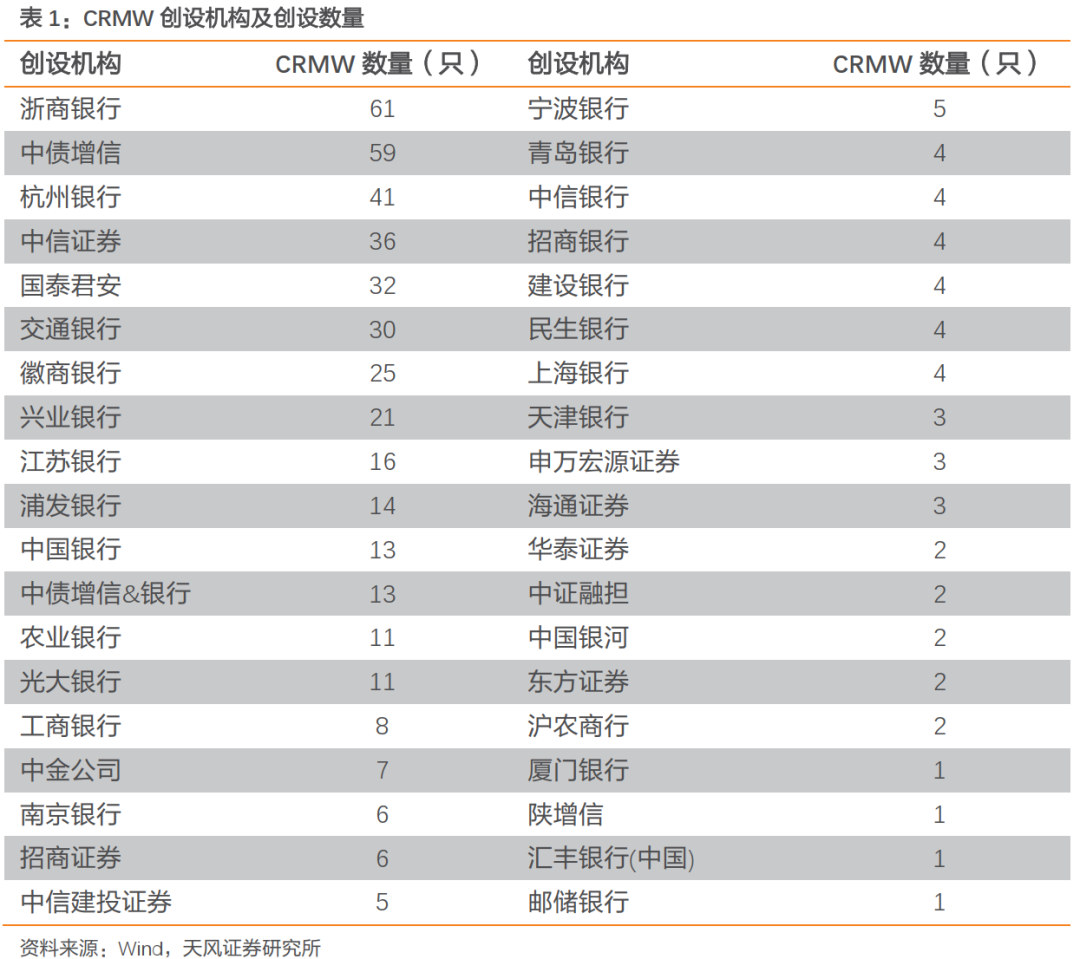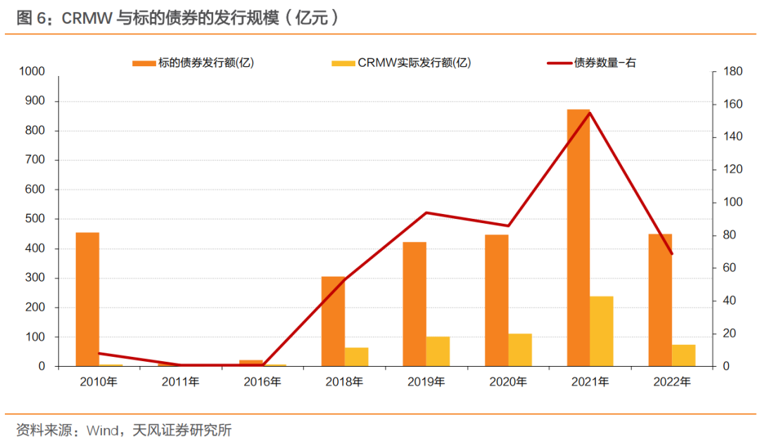 进一步观察近年来CRMW的发行情况,2010年创设后,CRMW在2011年及之后一度陷入停滞;2018年再度发行之后,CRMW整体呈现增长态势。