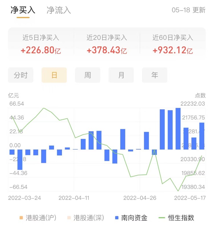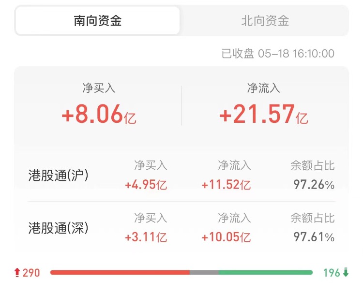 南下资金今日净买入港股8.06亿港元,其中港股通(沪)净买入4.95亿港元,港股通(深)净买入3.11亿港元。上一交易日净买入港股43.07亿港元。