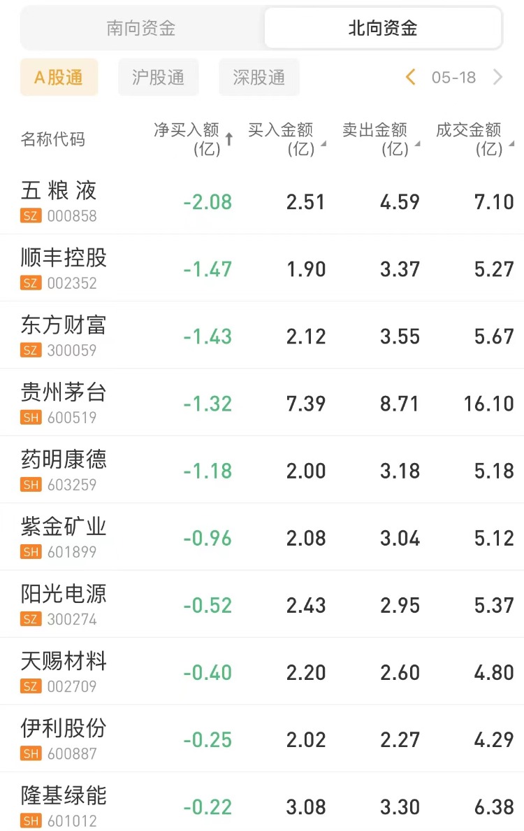 今日北上资金净卖出五粮液 $000858.SZ 2.08亿元,顺丰控股 $002352.SZ 遭净卖出1.47亿元。