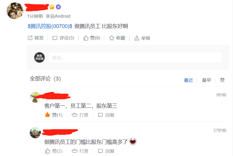 一方面,公司聚焦重点战略领域的投入,雇员成本有所增加,同时股份酬金开支有所加大。不少网友在社交媒体上调侃道,做腾讯员工比做股东要“好”,“客户第一,员工第二,股东第三”。事实上,和网上盛传的“裁员潮”相比,腾讯财报所体现出来的却恰恰相反。这也说明,腾讯在践行社会责任、促进共同富裕的道路上,算是“良心企业”了。