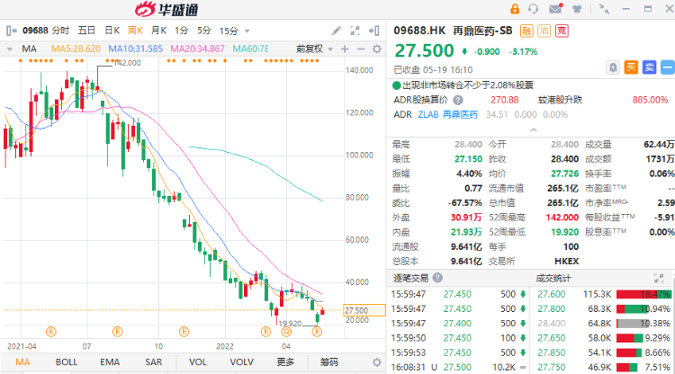 - 再鼎医药是一家立足中国、全球运营的创新型生物制药公司,致力于为中国及全球的患者提供癌症、自体免疫及感染性疾病领域的创新药物。此前,公司首季度业绩显示,截至2022年3月31日止三个月,集团收入约4672.4万美元,同比增加132.42%,公司拥有人应占亏损净额8239.4万美元,同比减少64.62%。