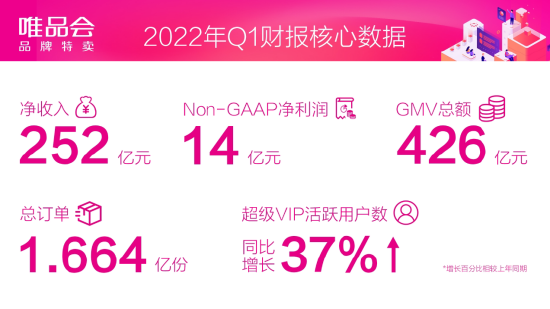 中国领先的在线品牌折扣零售商唯品会披露2022年第一季度报告。数据显示,2022年第一季度,唯品会实现净收入252亿元(人民币,下同),Non-GAAP净利润14亿元,Non-GAAP净利率保持在5%以上。尽管业绩表现受到疫情影响,但唯品会一季度利润率保持韧性,并连续38个季度实现盈利。