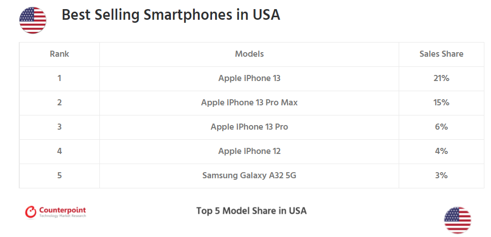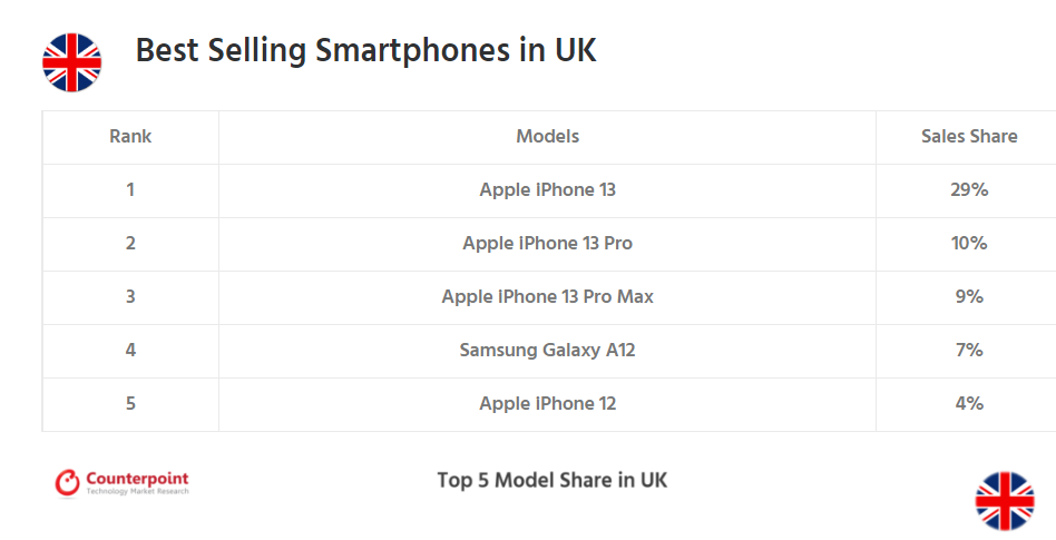 而且,不仅仅是在中国市场大卖,在美国、英国等主要市场,iPhone 13系列都占据了相当大的份额。在英国市场,iPhone 13及iPhone 13 Pro系列合共占据了48%的销售份额,而在美国市场同样如此,三款机型(iPhone 13 mini除外)合共占据了42%的销售份额,其中iPhone 13 Pro和iPhone 13 Pro Max的销售火爆超出了苹果的预料。