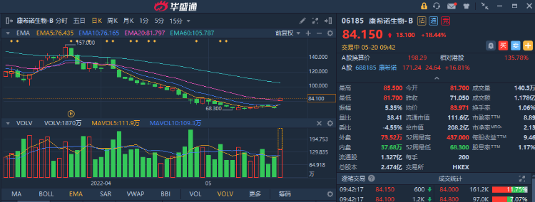华盛资讯5月20日讯,康希诺生物大涨18%,消息上,克威莎纳入世界卫生组织紧急使用清单。