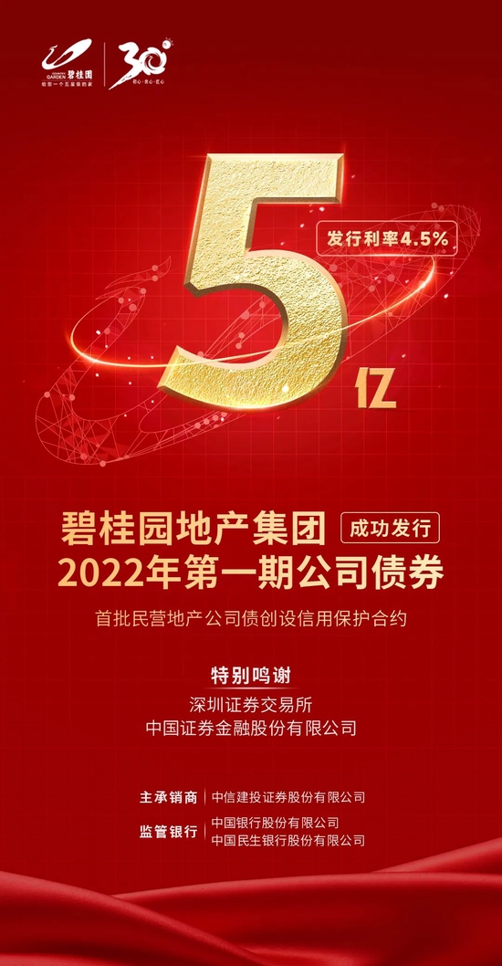 5月20日晚间,碧桂园地产已完成2022年第一期公司债券簿记建档工作。该笔债券简称“22碧地01”。在信用保护合约的支持下,其发行吸引了包括国有大行、股份行和证券公司等多家机构踊跃参与投标。最终发行过程圆满落地,票面利率4.5%。