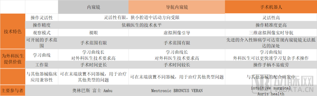 一位业内人士表示:“强生的Auris手术机器人的强项就在于导航技术,强生在术中实时导航的能力上非常强。MONARCH平台结合了三种不同的导航技术 - 电磁学,光学模式识别和机器人运动学数据 ,三种技术在手术过程中对支气管镜位置进行实时测量定位,并为进行支气管镜检查的医生提供了准确位置信息。”
