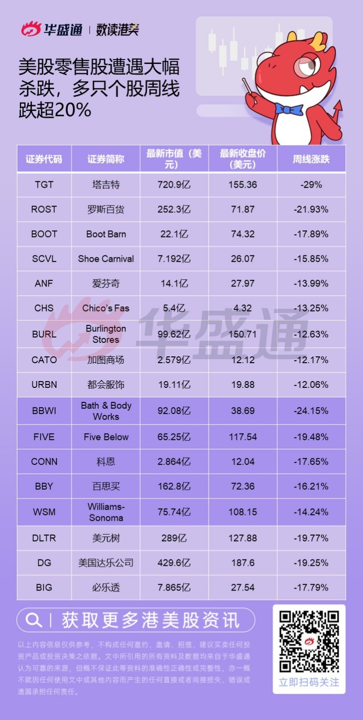 随着零售股的业绩相继披露,上周美股零售业各细分龙头股均遭杀跌。