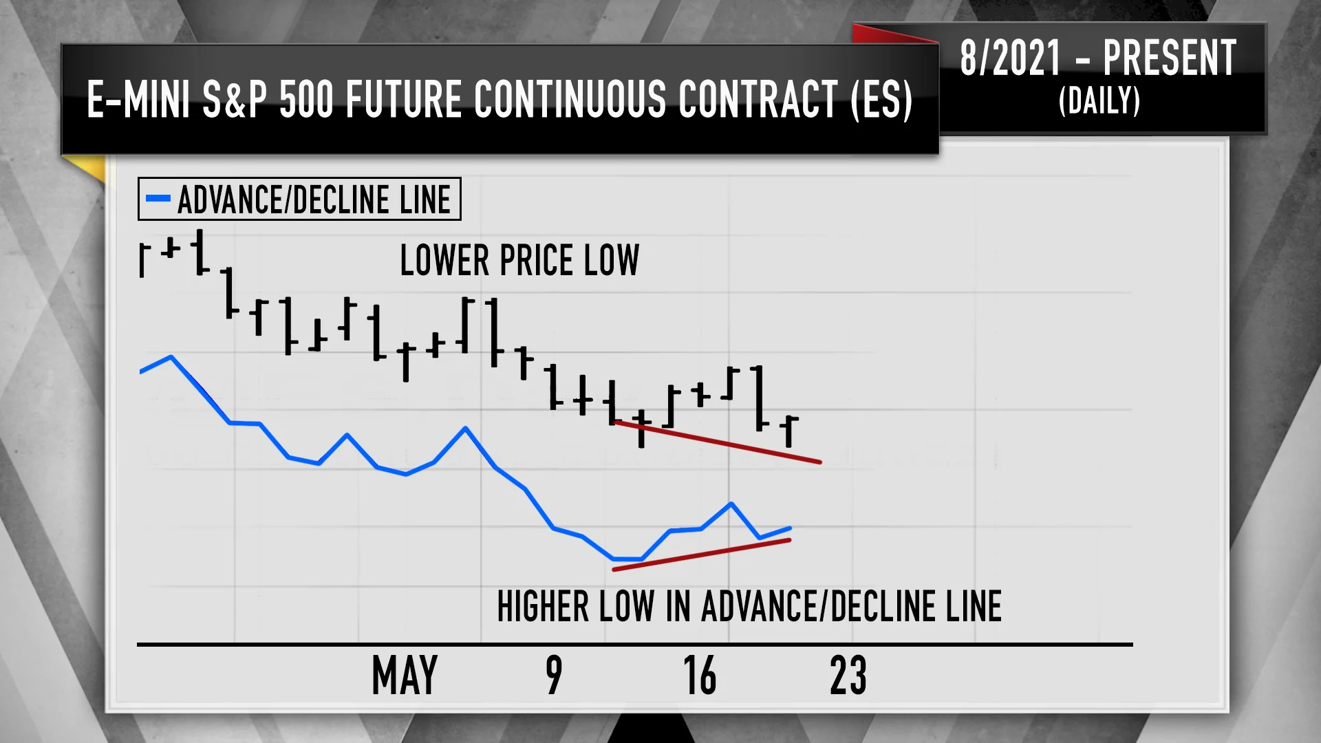 “现在,你可以看到,虽然标普500指数期货上周跌得一塌糊涂,但ADL指标一致保持得很好。准确来说,它正在稳步走高。”