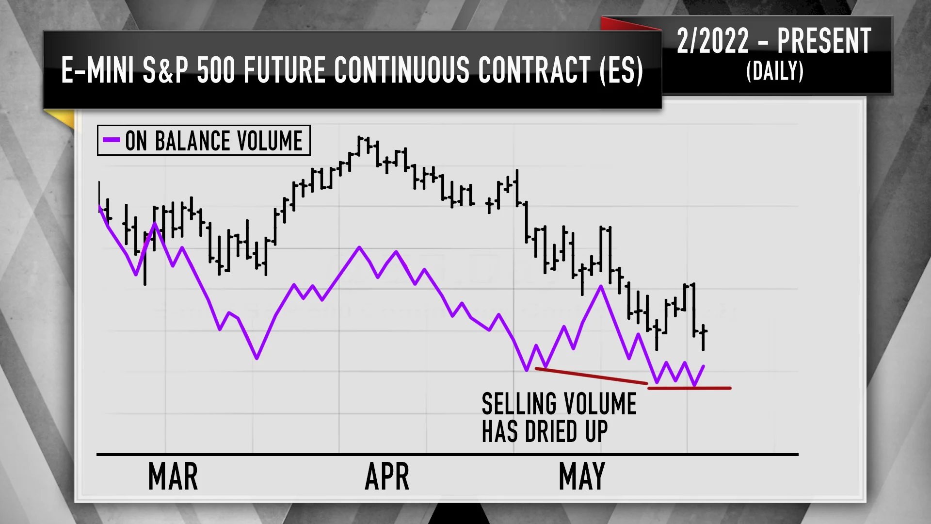 Cramer将这个指标和标普500指数期货日图走势叠加到了一张图中。Cramer解释称,“我们关心这个,因为成交量就像对技术人员的测谎仪测试:高成交量说的是实话。低成交量的举动往往会产生误导。”