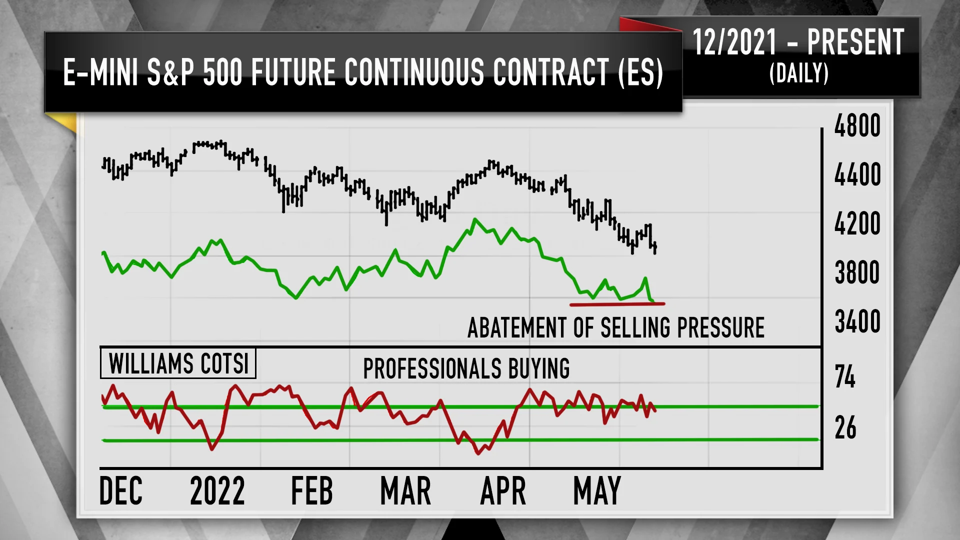 第三个被提到的指标是Williams的insider activity指标,Cramer将它与标普500指数期货日图叠加到一张图中。“看看图表的底部,这是Williams的交易员承诺指数,它展示了专业资金经理对其期货头寸的操作。”