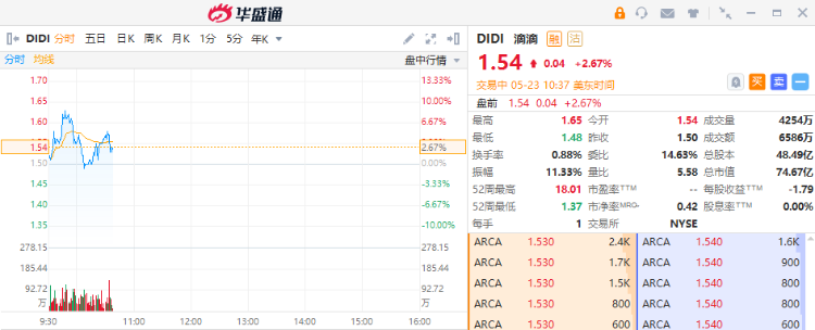 华盛资讯5月23日消息,滴滴(DIDI)涨近3%,盘中一度转跌,此前公告称,将推进ADS从纽约证交所退市。