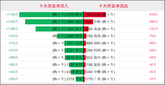 好仓(认购证及牛证)方面,周一腾讯、美团、快手相关好仓单日分别录得约1750万、1592万、1306万港元资金净流入;相反,远海、中移、海油相关好仓单日分别录得610万、260万、131万港元资金净流出。
