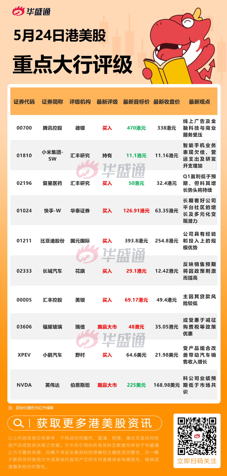 华泰证券发研报指,该行看好快手平台生态的持续增长及商业化潜力,维持盈利预测,基于SOTP计算目标价从117.71港元上调8%至126.91港元,目标市值人民币4660亿,直播/线上营销/电商业务分别对应人民币159/2234/2266亿,维持“买入”评级。