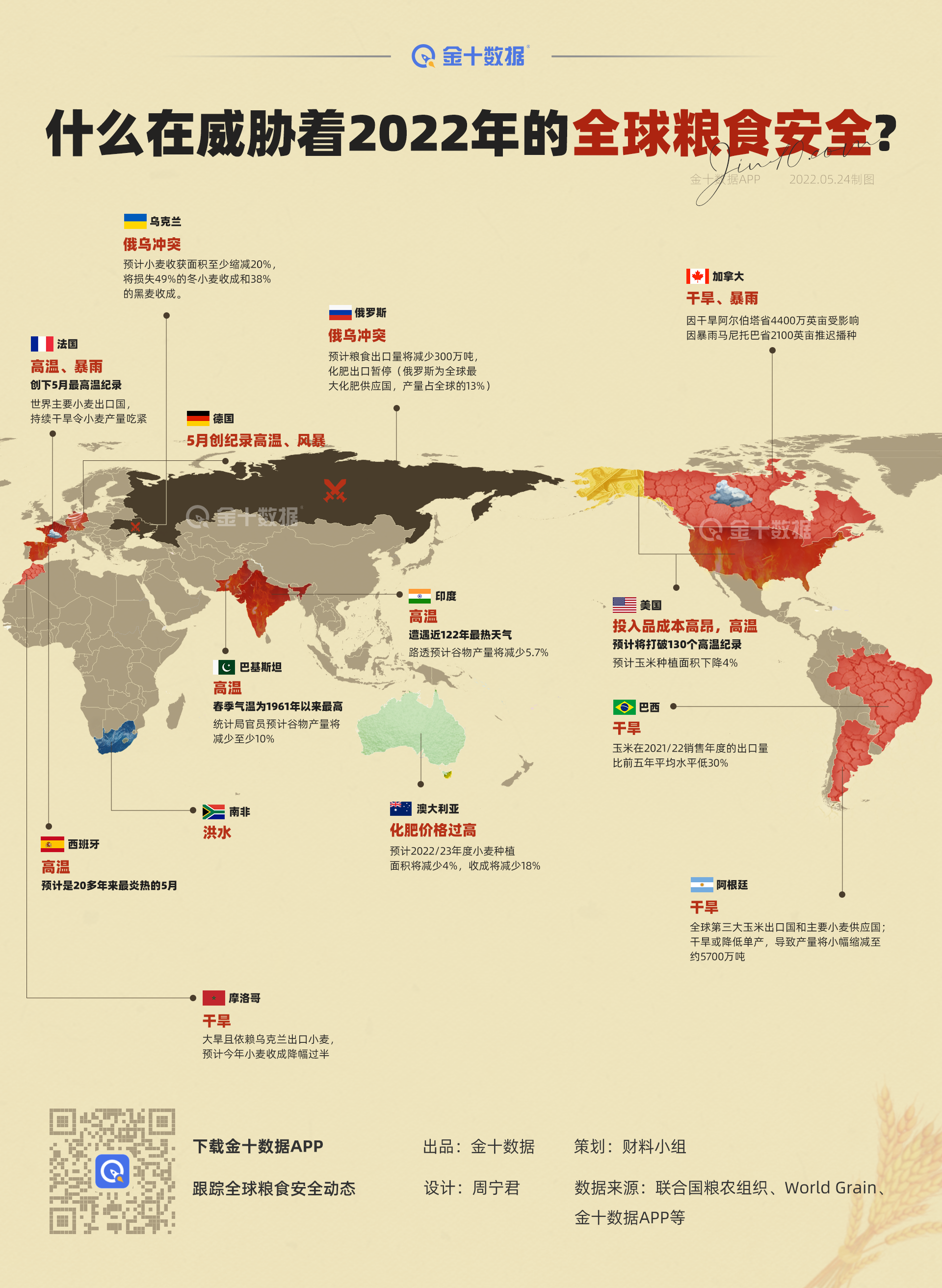 突如其来的战争,百年不遇的高温,出口不了的化肥,今年以来地区冲突和极端天气,正威胁着全球粮食安全。联合国粮食计划署甚至警告称,全球可能面临二战以来最严重的粮食危机。