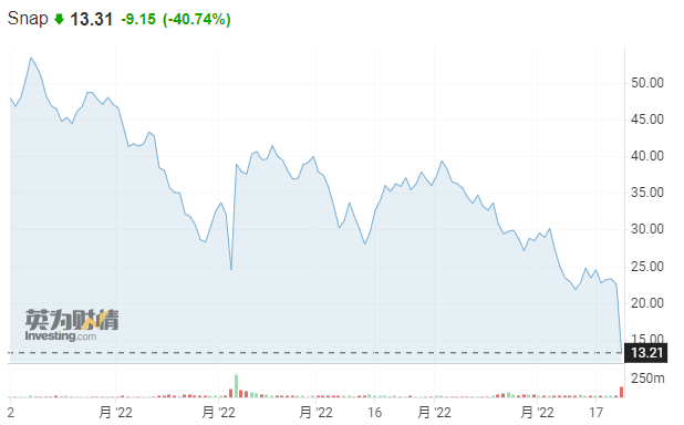 在美国社交软件公司Snap发布业绩预警后,该股现已跌超40%,带动Meta、推特、Pinterest、谷歌等公司的股价纷纷下挫。其中Meta现跌8.9%,先前一度跌超10%。