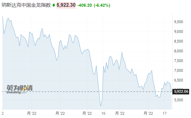 中概股也大幅下跌,纳斯达克金龙指数现跌6.4%,先前一度跌超7%。热门中概股中,满帮、BOSS直聘、万国数据、哔哩哔哩、百济神州跌幅居前。