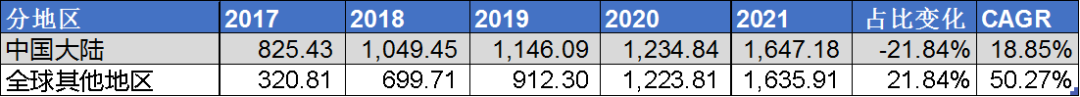 图:小米收入按地区分类 数据来源:Choice金融客户端